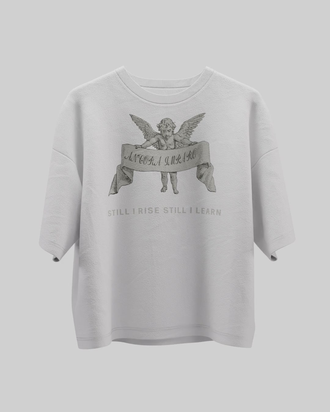 Front: Angel graphic with banner reading "Ancora Imparo"