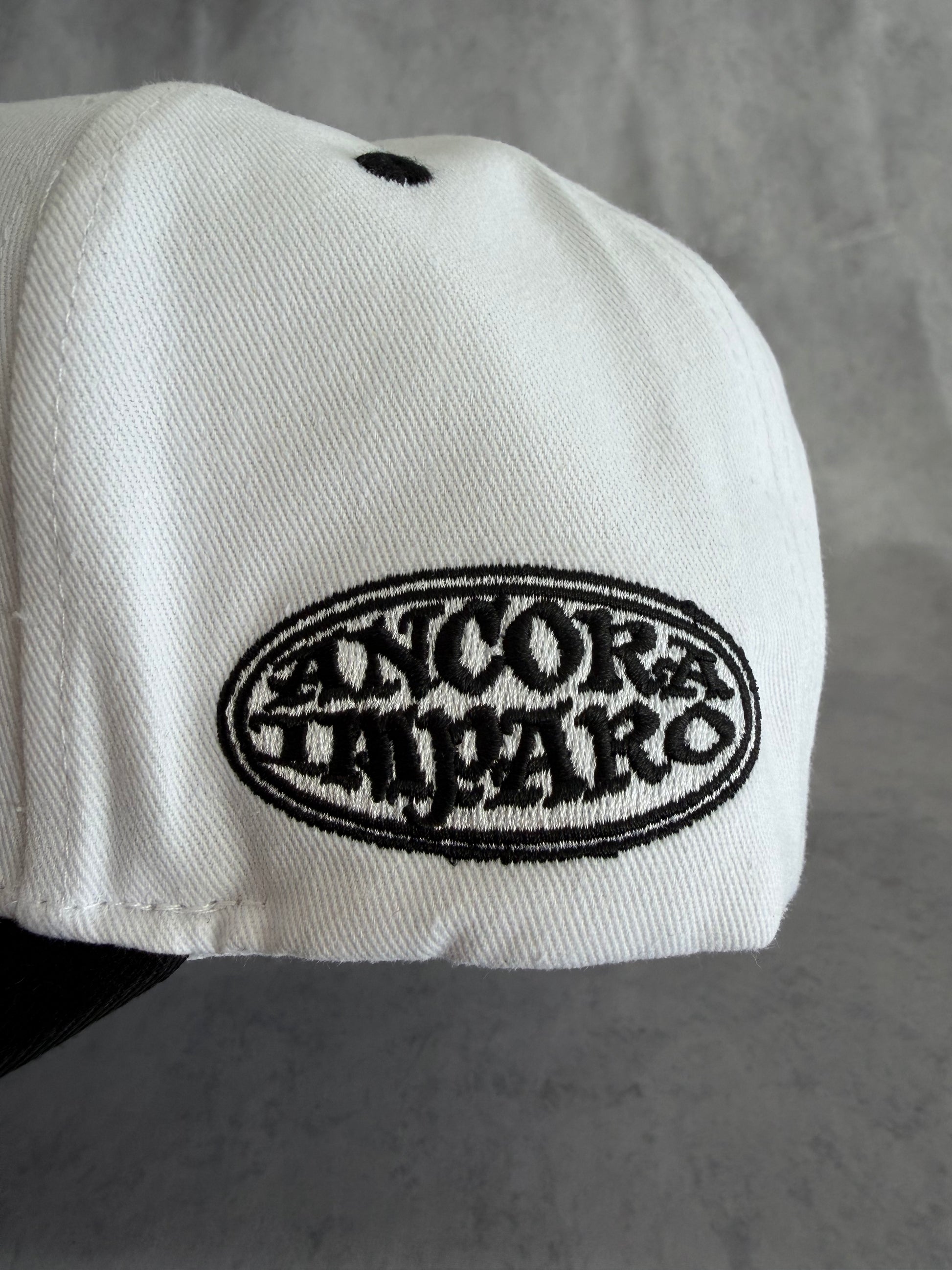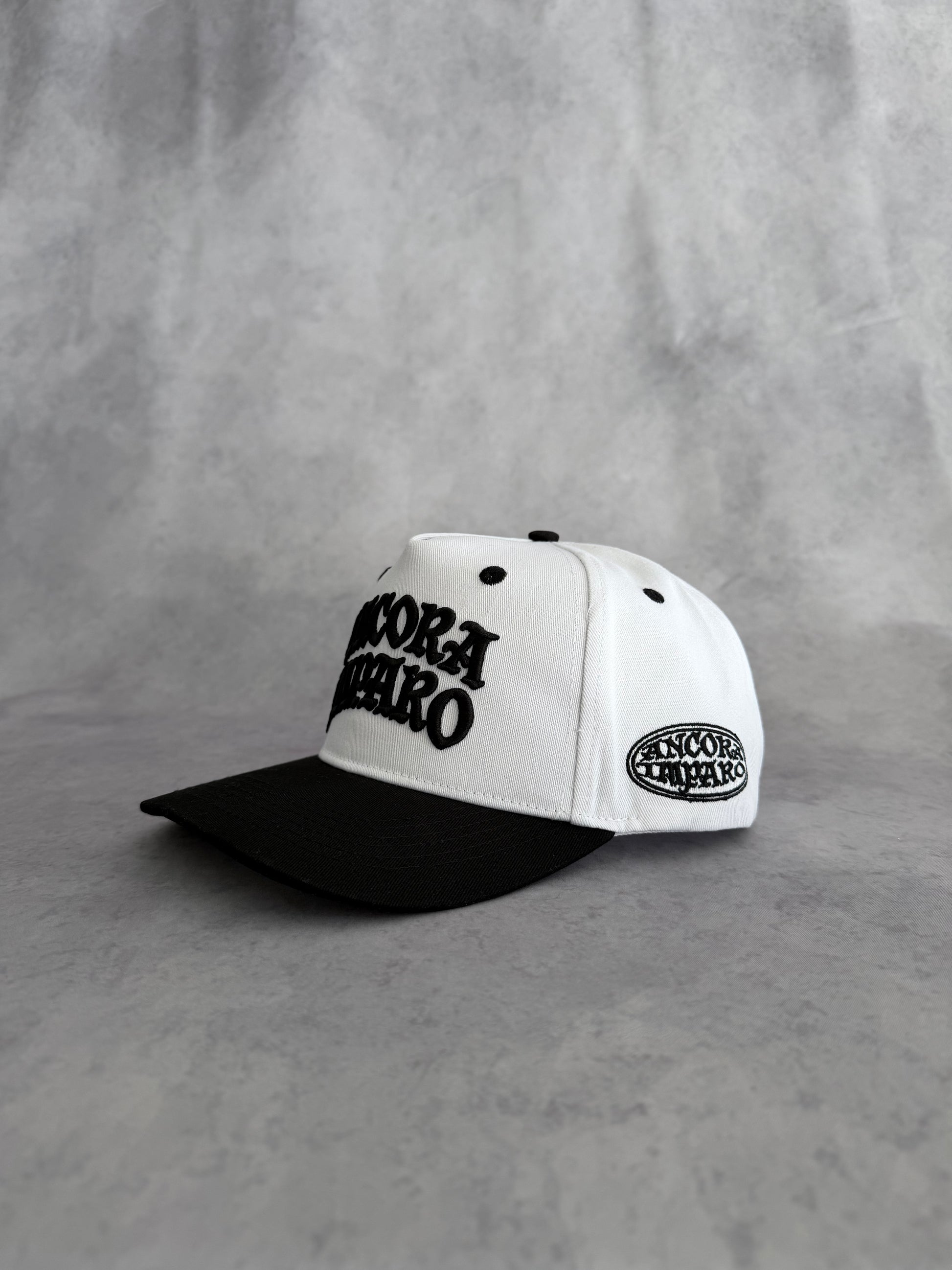 The Tuxedo Legacy Hat delivers a clean, bold contrast built for the ones who move with intention. Designed with a crisp white crown, black brim, and heavy raised Ancora Imparo embroidery, this piece stands out without trying.